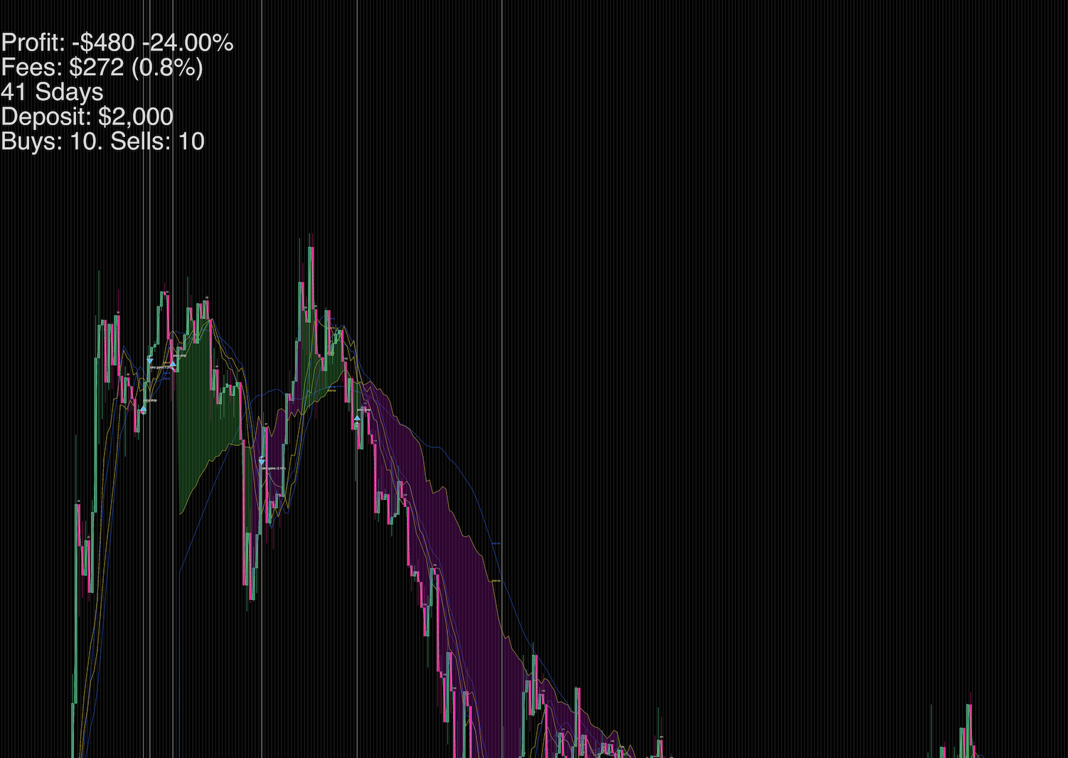 Trading simulator designed for crypto currencies such as ETH. Through this personal project, I gained invaluable knowledge of the complex world of trading, including its terminology and strategies. As a developer, I faced an exciting challenge in rendering the charts, which served not only as a tool for debugging, but also as an eye-catching visualization of trading data. Rather than connecting to an existing trading platform, the simulator used historical data to simulate trades based on various strategies, including moving averages such as EMA5, EMA13, and various SMA and EMAs. This project allowed me to expand my skillset as a product manager and developer while also gaining hands-on experience in an exciting and fast-growing field.